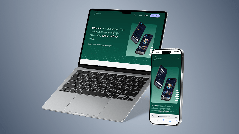 Every project tells a story—these case studies highlight my process, challenges, and solutions. Browse case studies Projects From UX/UI to development and strategy, these case studies showcase my approach to creating meaningful experiences. Portfolio Website This very website was created as a small-scale student project and is intended as a minimal-upkeep showcase of my work. Web Design • Content Management 2025 Read case study Time Parabox A puzzle game that combines a physical escape box and a cross-platform native mobile app to allow players to solve riddles with sensor technology. Project Management • Product Owner • Frontend Development • Logo Design • Writing & Storytelling 2025 Read case study Bevry A web app for creating, collecting, and sharing cocktail recipes, with a playful twist. Frontend Development • Scrum Master • UX/UI Design • Brand Design • Usability Testing • Web Design 2024 Read case study Design Thinking - Client Project An interaction concept for a touchscreen system created with the design thinking method for a client in the health sector. Design Thinking • UX/UI Design • User Research • Prototyping • Usability Testing • Design Thinking Workshops 2024 Read case study The Root of all Weevil - Portfolio Website A portfolio website for a student animation project, showcasing a 3D animation video. 2024 Frontend Development Read case study Print 2 Mobile: Exhibition Breakpoints A print-to-mobile concept using QR codes integrated in museum plaques to provide in-depth information about artworks to visitors. Web Design • Frontend Development 2023 Read case study Streamie An interactive prototype for a mobile app to combine and manage multiple streaming subscriptions, based on thorough user research. User Research • UX/UI Design • Prototyping 2021 Read case study